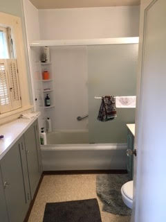 Like the kitchen, this bathroom felt dated and out of place in this classic home before it's transformation. The vanity, bath surround and counter-top surfaces all felt outdated and inconsistent with the feel of this classic home.