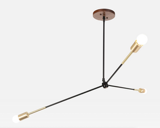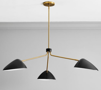 Clockwise From Left: West Elm Curvilinear Mid-Century Chandelier , DecoCreations Geometric Art Deco Chandelier , All Modern Presnell 5-Light Chandelier , CB2 Bubbles Brass Ring Chandelier , Anthropologie Oahu Fringe Pendant , Worley's Constellation Chandelier with Exposed Bulbs